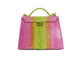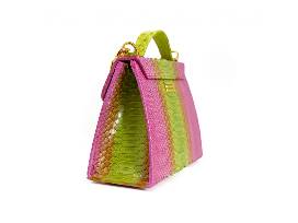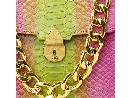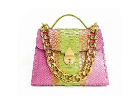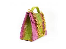 This handbag, handcrafted in our very own workshop and made of the finest lime and pink exotic python, this one-of-a-kind Casey Petite can be worn either as a crossbody or by hand. Thanks to its elegant design and 24kt gold plated lock closure, this top handle bag promises to make a major entrance wherever you bring her. Meet our modern twist on the traditional pink and green, boasting a hand crafted handle created with the rarest flattened pearl lime ostrich. Lined in the most supple Italian metallic lime lambskin. Replete with our own 24kt Cuban statement chain.