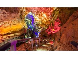to Martvili Canyon and the Prometheus Cave offer spectacular views of stalactites, stalagmites, petrified waterfalls, underground rivers, and crystalline cave lakes with breathtaking views of Khvamli Mountain.