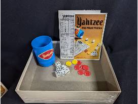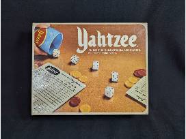 This vintage 1975-version Yahtzee set is full of nostalgia. The box shows its age, but the game pieces are all there (except a few used scorecards), and they're in great shape!
