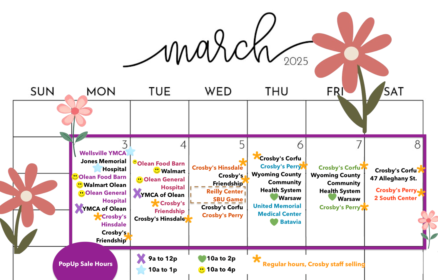 An 18-stem bouquet will be available for $25 or a 9-stem bouquet will be available at the locations above. We will also be selling Oliver's Chocolate Bars for $2 each.