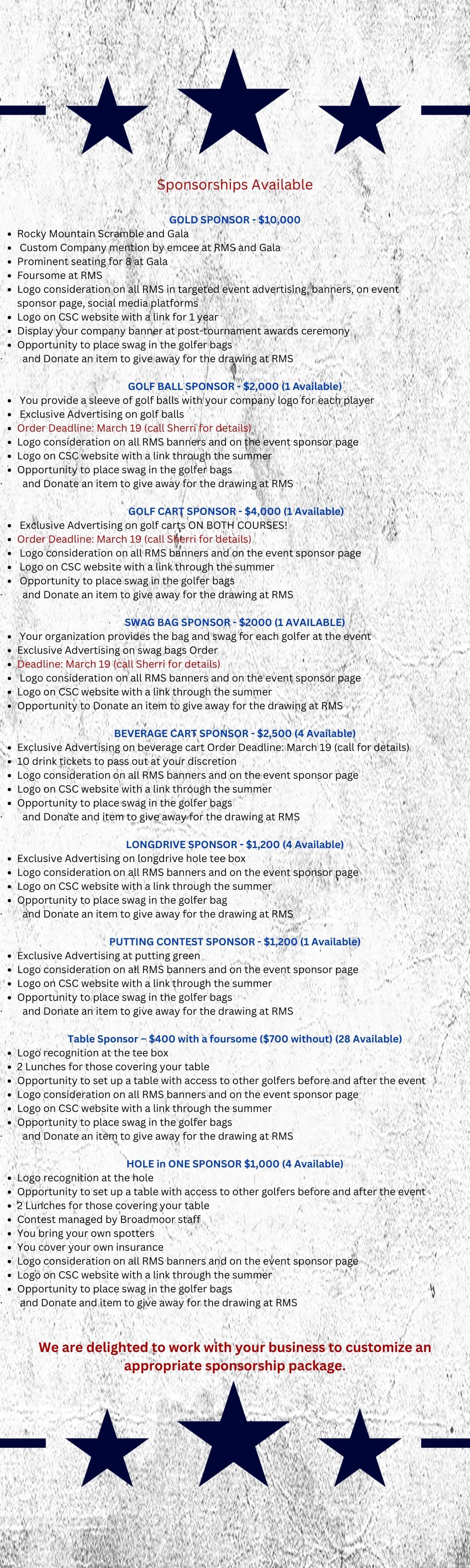 SPONSORSHIP AND GOLF PACKAGES