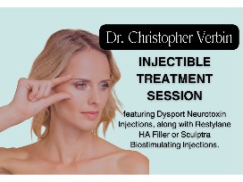 Refresh, lift, and smooth your skin with a personalized injectable treatment session performed by board-certified plastic surgeon Dr. Christopher Verbin. This exclusive session combines Dysport neurotoxin injections with either Restylane HA filler or Sculptra biostimulating injections to restore volume, soften fine lines, and stimulate collagen for a naturally youthful glow.