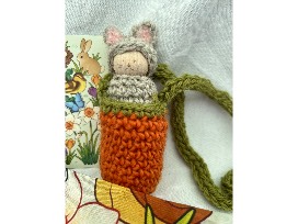 Paired with a sweet Green Mountain Wee Woolies peg doll bunny, lovingly nestled inside a handmade felt carrot pouch, this set is perfect for storytelling, nature tables, and imaginative play.