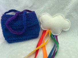 Hand knitted pouch and hand sewn rainbow cloud