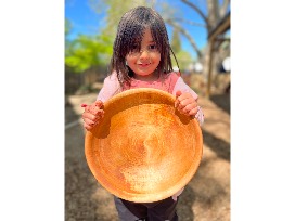 This beautiful 12" wooden bowl is a heartfelt collaboration between the Apple Blossom preschool children and Ms. Barbara's brother, who provided guidance and support in its creation. Carefully sanded and polished by the children, the bowl shines with natural beauty and the joyful spirit of little hands at work.
