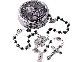 Also includes a beautiful Saint Michael the Archangel Hematite Black Stone Beads Rosary Necklace with Metal Gift Box.