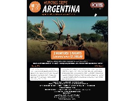 Exclusions: Trophies (check with Outfitter); International or domestic flights; Transfer service in Buenos Aires; Local Airport Transfer to the lodge $200 round trip per person; Hunting license $400 per hunter; Rifle rental $300 per hunter; Ammunition $50 (20 rounds of ammo); Government Tag; Trophy exportation & delivering costs; Taxidermy services; Capping; Lodge & Field Gratuities (refer to gratuities policy in the pre-trip file); Insurance & Medical Expenses