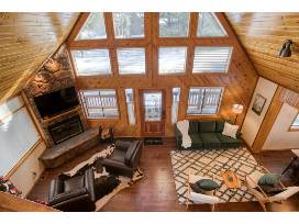 The cabin boasts two (2) king beds, two (2) double bunk beds, a furnished back deck including a gas grill, a fully-equipped kitchen, a fireplace, parking and so much more!