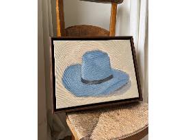 Step into the quiet elegance of the American West with this serene and stylish painting, "Old Blue", by celebrated local artist Alex Bodishbaugh King. Rendered in calming tones of blue and gray, this hat speaks volumes in its simplicity-capturing a timeless moment of character and calm. A perfect piece for collectors who appreciate understated sophistication and Southern charm.