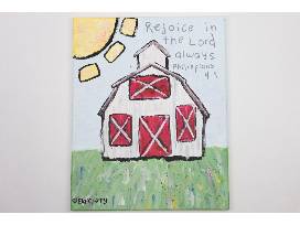 Ela loves living on a farm with her family and animals of all kinds-even snakes. She likes to watch animal and art videos. Even though she has very low iron she is always on the GO! Her painting of the Barn represents all the love she has for the farm life she lives. She also loves art and creating something out of scraps, glue, beads, trash.. you name it! She loves the Lord and her verse represents her and her low iron journey, Philippians 4:4 Rejoice in the Lord always. She is always happy and has never feared the path she is on.