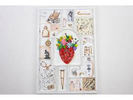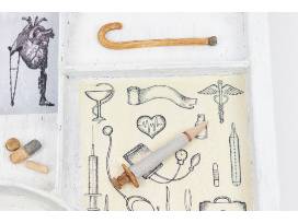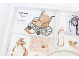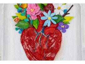 This piece depicts MacKenzie's story of overcoming a mountain of health obstacles including a heart transplant. While her medical needs of the past are on display, her present is bright and her future is in full bloom.