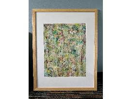 Bring home this captivating abstract artwork, where vibrant colors and intricate patterns dance together in perfect harmony. Framed in a natural wood finish, this one-of-a-kind piece adds depth, energy, and a touch of modern flair to any space. A conversation starter, a mood lifter-this painting is ready to inspire.