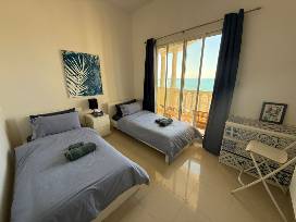 Spend a wonderful week in Ras Al-Khaimah, United Arab Emirates! This delightful beachfront condo is walking distance from the beach and a marina with fishing trips. Restaurants, a sports bar, and upscale beach clubs are a five-minute (free!) ferry from the marina or a five-minute drive. Stunning hiking, historical and cultural sights nearby. Watch the fish auction in the old town and bring home your dinner! Just an hour by car from Dubai, Ras Al-Khaimah offers wall-to-wall sunshine with the beautiful beaches and natural beauty of the Persian Gulf. The condo has 2 bedrooms and 2 1/2 baths; it would be perfect for either four adults or two adults and two children. Choose a mutually agreeable week with the donor. You'll want to come between November and April because the summer is too hot! Fly Emirates Airlines direct from Newark or JFK, or American Airlines (with a stop) from Philadelphia. *