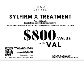 Bid on a premier medspa experience at Luna Medspa, featuring a radiofrequency microneedling treatment, Sylfirm X. This 90-minute treatment includes the face & neck and treats fine lines, wrinkles, acne scars, skin laxity, hyperpigmentation, rosacea and over tone/texture. In addition to this treatment is a comprehensive anti-aging skin better regimen, which includes serums for the face, eyes, and neck. Also included is a 90-day skin health supplement, BioRewind. This basket is valued at $2070!