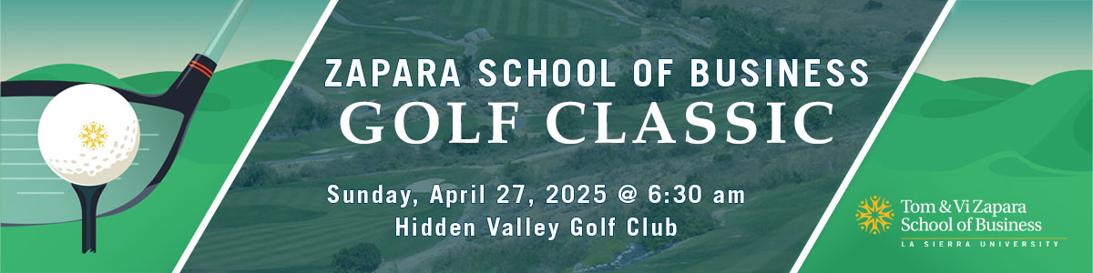 Join us on April 19, 2026, for the La Sierra University Zapara School of Business' inaugural Golf Classic! All net proceeds will support business student scholarships and mentorship programs. This exciting event is part of La Sierra University's Homecoming weekend, and we invite alumni, friends, and community members to be part of the action. We look forward to seeing you on the course!