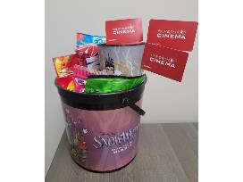 The Cinema Movie Bundle contains: Snow White Live Action Movie collectible popcorn bucket, Snow White Live Action Movie collectible drink cup, (4) movie passes and candy!