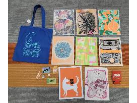 Bundle includes: art print set, Peel tote bag, 1 year Lime level membership, Peel koozy, various stickers and buttons.