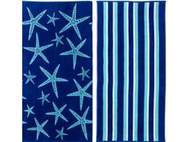 *Two 100% Cotton Beach Towels in Navy Blue Starfish/Stripe Designs