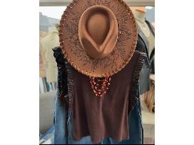 - Art for Adrienne - A custom designed Suede Hat by Artist Lauren Sharp. This beautiful hat is a one-of-a-kind wearable art piece that is as unique as you are! Lauren, the artist and creator behind Art for Adrienne, started making hats as a way to merge her love for art with her desire to create something unique and wearable. Lauren's journey into this creative venture was deeply influenced by her mother, Adrienne, who passed away in 2009. She continues to inspire everything Lauren does. Adrienne was an accomplished artist herself, who could find beauty in anything. The way she viewed the world - her kindness, her wisdom, her passion for life - was a light that continues to guide Lauren even in her absence. Naming her business "Art for Adrienne" was Lauren's way of honoring her mom's legacy and keeping her spirit alive through her work. Each piece she creates is a tribute to her mom, and a way for her to stay connected with the woman who showed her what beauty, love, and strength truly are. ($120)