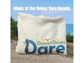 Celebrate the bold spirit of Diana of the Dunes-Alice Mabel Gray, the trailblazing woman who defied conventions to live freely among the shifting sands of the Indiana Dunes. This cozy white hoodie features the colorful "Dare" design inspired by the Diana of the Dunes Dare at West Beach, a hiking challenge that invites visitors to climb 250 vertical feet across dunes and trails, following in Diana's adventurous footsteps.
