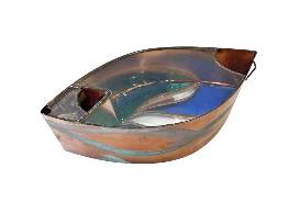 Made by artist Julie Kelly, this bird feeder combines the traditional beauty of cut stained glass with the strength of solid copper. Different textured and patterned stained glass make each Northern Light bird feeder a unique and special work of art. 11 in. high x 5 in. wide x 2-1/2 in. deep.