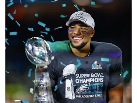 In his first season with Philadelphia, Saquon Barkley made history, racking up over 1,200 regular-season yards, 10 touchdowns, and breaking the NFL record for single-season rushing yards - including playoffs. His explosive performance powered the Eagles' thrilling run to the Super Bowl and cemented his legacy in the record books.