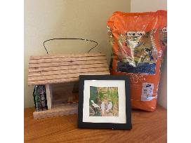 Includes: Original Clay Monoprint and Cedar Bird Feeder, Squirrel Guard Feeder and two bags of bird feed