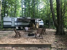 Join in on the fun of the outdoor lifestyle with your family and friends with a seven (7) night stay at Indigo Bluffs RV Park and Resort at Sleeping Bear Dunes in Empire, Michigan. Choose from two options, both sleep 4-6 people: a cottage or an RV. Both combine the comforts of home with an authentic camping setting under a canopy of towering hardwoods. Your interior delivers 2 queens, etc; plus fully appointed kitchens, full bath, and room to stretch. Your exterior offers covered and furnished patios with each cottage; fire pit, picnic table and shared grill with all accommodations. Located in Leelanau County, Michigan's top vacation destination, means this is a great place to plan any length of stay.