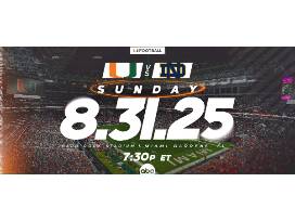 Be there for the season opener for Notre Dame football in Miami, Florida for the Irish vs. Hurricanes game on Sunday, August 31, 2025 at 7:30pm at Hard Rock Stadium. The series between the two programs is a storied one, with Notre Dame holding an 18-8-1 advantage overall. But that's not all! This game experience is complete with airfare & hotel. This epic package includes: