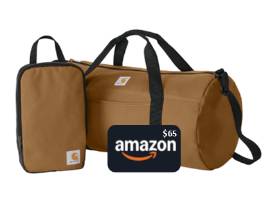 With a rugged Carhartt duffel bag and matching pouch, you're equipped to move through life with purpose-whether you're heading to the gym, the job site, or a weekend escape. Tucked inside is $65 in Amazon gift cards, giving you the power to choose what comes next: gear, gadgets, or a little indulgence. It's a package that blends heritage with possibility, ready to go wherever your story leads.