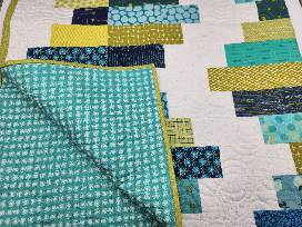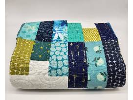 Snuggle up on those chilly nights with this beautifully handmade, 100% cotton lap quilt. Reversible, 100% cotton in blue, teal and green. Measures 56" x 74"