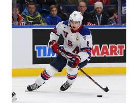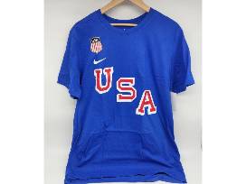 Cheer on Team USA hockey with this Nike t-shirt in royal blue. On the back is #43, Quinn Hughes, of the NHL. Size Medium.