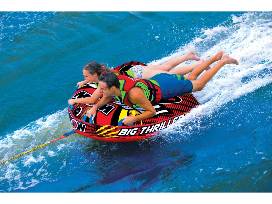 The Big Thriller Towable Tube is designed for an extreme ride. The tapered front allows for easy take offs and the reinforced nylon promises to deliver for even the more daring rider.