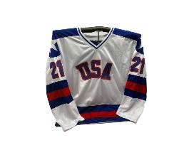 Relive one of the greatest moments in sports history with a signed Mike Eruzione Team USA hockey jersey honoring the captain who led the unforgettable Miracle on Ice. Size XL