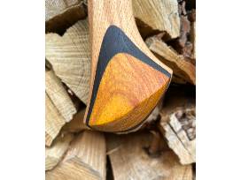 A very collectible 2 lb Plumb National pattern axe featuring a 21" hand carved red oak haft accented with elegant wenge and canary wood palm swell laminations. A rare blend of craftsmanship, heritage, and utility. Perfect as a display piece or a trusted pack axe.