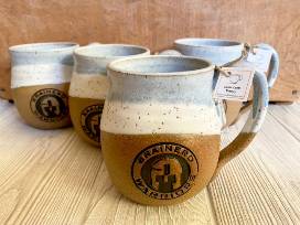As with all Laura Lynn Pottery dinnerware, this mug is made with non toxic glazes that are dinnerware, dishwasher, and microwave safe. The mugs are slightly larger than an average size mug with a 3" rim diameter and height of 4".
