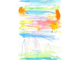 Emery is 6 yrs old and has been impacted with NF1 with fibromas, cognitive limitations and bone deformities that include scoliosis, torticolosis and her foot bones not to align appropriately and inhibits her ability to walk with a normal gait and her balance. Her art work is a picture of the mountains that she wants to hike one day (and not be carried).