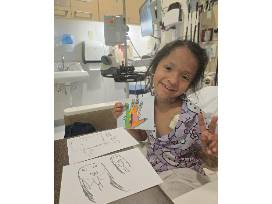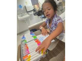 Hi, I am Anahi, 6 year old NF1 warrior. This is my 2nd year participating, I drew my drawings on the first infusion of phase III of a clinical study chemotherapy for an OPG; optic pathway glioma. I started chemotherapy October 2024 and my tumor has responded well. Chemotherapy has affected my day to day life, sometimes the nausea is intense or overall tiredness effects my ability to go to school or enjoy foods I once loved. But overall I am happy and full of energy. I enjoy dance/gymnastics. Spending time with my family, friends and absolutely love my puppy Bingo & Skittles.