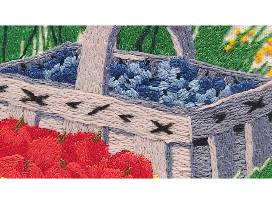 Hand cross stitched by MommaLee Country basket garden