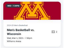 - 2 tickets for mens basketball on 3/5