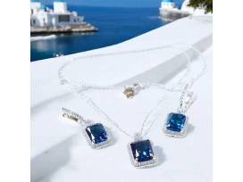 Both the necklace and earrings are designed to complement each other beautifully, offering a cohesive, regal look. The combination of the 925 sterling silver base, white gold overlay, and the striking blue sapphire stones creates an enchanting, timeless set that will leave a lasting impression wherever you go. Whether worn together or as individual pieces, the Royal Sapphire Elegance Set embodies a sense of royal grace, making it the perfect choice for those seeking elegance with a dash of luxury.