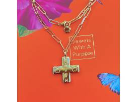 1The Santorini Cross Necklace is a stunning statement of faith and artistry, designed to combine meaningful symbolism with elegant Mediterranean-inspired craftsmanship. Handcrafted from 925 sterling silver with a radiant gold overlay, this exquisite piece features an 17-inch paperclip chain, perfectly complementing the bold yet refined design of the cross pendant.