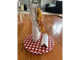 Mary Lynn crafted this deliciously fun piece as a tribute to her Italian heritage and her lifelong love of dance, blending tradition and artistry into one unforgettable creation. A true feast for the eyes, Bon Appétit brings bold flavor to the "It's All About the Shoe" campaign-mangia and vote!