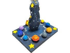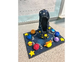 This space themed shoe was inspired by Miss Ashbaugh's class who also created a space themed Rube Goldberg engineering project that will be competing at state later this spring!