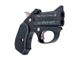engraving on both sides of a flat-sided 4.25" barrel chambered in 45 Colt/.410. The First Lady has a Cerakote finished 3" barrel and is chambered in .38 Special with extended B6 resin grips for comfort and manageability.