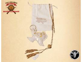 Kendra Scott Yellow Rose Ansel Rose Bolo Necklace- Gold and Texas Cowhide Keychain.