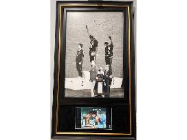 Own a powerful piece of history with this framed, autographed photo of the iconic moment from the 1968 Mexico City Olympics, when Tommie Smith raised his fist in a silent, yet world-shaking stand for human rights. This defining image symbolizes courage, resilience, and the ongoing fight for equality.