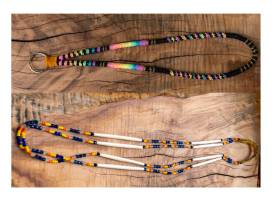 Celebrate artistry and cultural heritage with this stunning set of two handcrafted beaded necklaces, created by a talented artisan from the Yakama Nation. Each necklace showcases vibrant colors and intricate patterns rooted in tradition: