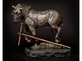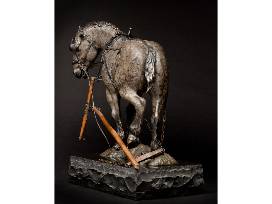 Own a piece of artistic history! This 18" bronze, titled "The Great Escape" by D. Michael Thomas from Buffalo, WY was done in 1996 bronze, is 6/25 sold, and was sold out in 2002. Thomas is a storyteller and speaks with his hands to create work that captures a way of life that has either gone to history or is fast disappearing. "The Great Escape" is a horse who's blinders were intended to protect him from the real and imaginary danger behind him now they only protect him from his own common sense. Once familiar working clothes that he wore when he was employed to make his little meadow circles have now become the makings of a runaway. One last snort at the wreck developing around him and he takes off for the biggest, fastest, and freest circle of his life.