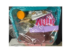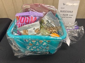 Basket with a Pink Snackle Box along with various snacks